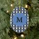 Custom Blue Abstract Scarab Pattern Monogram Ceramic Ornament