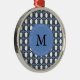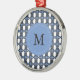 Custom Blue Abstract Scarab Pattern Monogram Metal Ornament