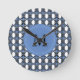 Custom Blue Abstract Scarab Pattern Monogram Round Clock