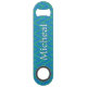 Colourful snazzy bartenders speed bottle opener done in a blue and green glitter look chevron pattern, with custom white 3D looking text, on both sides. Personalize the name to read what ever you want. Great gift idea.