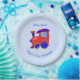 Custom Blue and Red Train Birthday Paper Plate