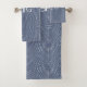 An interesting pattern of blue arches covered with white dots bath towel set. Initials added to personalize the set. Matching bathmat is also available.