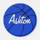 Custom Blue Basketball Round Fridge Magnet: A nice and personalized decoration for the fridge, locker, or any other metal surface. Type in any custom text - player name, team name, jersey number, etc. - to personalize it!