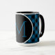 Beautiful contemporary black and blue diagonal chequered plaid pattern. Stylish rustic style mug with room to customize or personalize with your monogram.