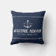 Custom Blue Boat Name Nautical Welcome Aboard Throw Pillow