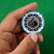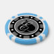 Custom blue casino poker chips for gambling party. Beautiful casino coin design with spade icon and elegant typography. Customizable marker colours. Available in blue, green, red, pink, yellow, orange and more. Personalize with custom name, unique monogram, initials, dollar amount or lucky number. Classy script typography. Luxury gift ideas. Also great as Las Vegas destination Birthday or wedding party favour gift. Double sided print.