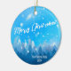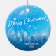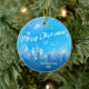 Custom Blue Crystal Snow & Forest Merry Christmas Ceramic Ornament