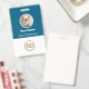 Easily personalize this Custom Employee Name Badge with Photo, Scan Bar Code and business logo. A simple business design in vibrant blue and white colours fully customizable in front and back sizes, sans-serif basic and modern fonts and a professional and clear look. Avaiable with lanyard, metal clip or with retractable. No minimum order.