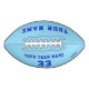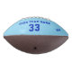 Custom Blue Football with Name, Number and Team Name. Personalize it with your name, team name, number and the year - optional. The text is a trendy white typography on a blue background. You can change any text on the football or erase it. A perfect gift for football players, teammates, coaches, your friends and family. Great keepsake to remember your favourite sport.