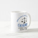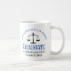 This blue custom law school graduation mug gift features modern typography for a class of 2025 graduate. Customize with your graduating year under the scales of justice for a great personalized lawyer keepsake for a graduating attorney.