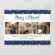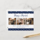 Custom blue photo wedding announcement holiday postcards featuring a starry blue background with 3 photos in the centre and a beautiful hand-lettered script title above. Easily personalize this blue holiday postcard with your images, message, and your family name. You can also personalize the font and change the colour of the text and the background as well.