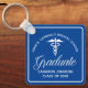 This custom blue medical school graduation keychain features classy white typography under a medical caduceus and your college name for the class of 2025. Customize with your graduating year under the elegant calligraphy for a great personalized university graduate gift for a nurse or doctor.