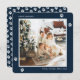 Custom blue paw print photo Christmas cards. Easily personalize this dark blue photo Christmas cards with your image and names.