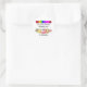 Cute customizable Teacher's Welcome to My Class stickers, showing a bright colourful WELCOME followed by wording which reads (insert your name here)'S CLASS IS A HAPPY PLACE. This text is CUSTOMIZABLE so you can add your name and class or create your own text. There is also a group of smiling face icons. You can use these Welcome stickers to welcome your new students back to school. Matching gifts and notebooks are available. Also in blue and yellow.