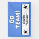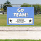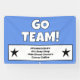 Here is a bright sign to let people know about your team featuring the colours blue and black! Personalized with your own sponsor information or any other words, right on this page! Go Team!