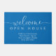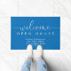 Introducing our custom open house welcome doormat, designed specifically for real estate agents. It's more than just a mat—it's a statement piece that reflects your commitment to your professional. Shown in a classic blue and white palette with a modern script font for "welcome", though all colours are editable. Personalize the template with your name, title, and contact information. © Kimbellished, LLC