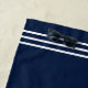 Nautical boating beach towel reading your custom boat name surrounded by a ship's well and anchor in modern navy blue with seagulls.