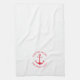 Custom Boat name or Family name, Welcome Aboard, nautical red anchor white background kitchen towel.