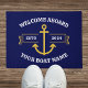 Custom Boat Name Welcome Aboard Navy Blue Gold Doormat