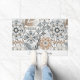 A modern Boho style abstract floral shapes doormat with your family name. Earthy browns and greys. Eclectic mixed stylized geometric florals.