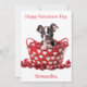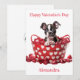 Custom Boston Terrier Pup Heart Basket Valentine Holiday Card