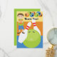 This custom bowling birthday party invitation features several bowling balls in bright colours, bowling pins, and a boy holding a bowling ball. Can be customized as a bowling party invitation, a bowling party thank you card and more.