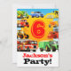 Nine bright colourful trucks surround a great big number 6! Add your own age, name and party details! On a bright sky blue and golden yellow background, these trucks make a very colourful and fun truck themed invitation or announcement. On the reverse, you can list all your custom truck party details. Perfect for your fire truck, digger, truck or tractor mad 6 year old on his or her 6th Birthday. Wonderful 6th truck themed birthday party idea for your 6yr old. Kids love Fire trucks, Big Trucks, Diggers and Tractors and six year olds definitely love them! Modern children's construction and truck themed birthday party supplies, accessories, party favours and gifts. All designs and truck illustrations © Paul Stickland