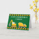 Cool custom construction excavator and cement concrete mixer happy birthday card for a boy who loves yellow construction vehicles in black and yellow. Fun green vehicle card for kids who love cars and dump trucks. Customize with your kid's name under the black and yellow caution tape with a personalized happy birthday message including their name and age.