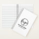 Custom black and white business notebook featuring a minimalist design with your logo along with two lines of text. These simple custom notebooks are great to give as client gifts or as promotional items / give aways for corporate events or trade shows.