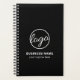 Custom black business planner featuring a minimalist design with your logo along with two lines of text. These simple custom planners are great to give as client gifts or as promotional items / give aways for corporate events or trade shows.