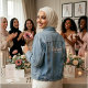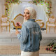 Celebrate your wedding weekend in "Quiet Luxury" with this personalized light-wash denim jacket. Designed for the modern bride who values minimalist elegance, this piece features sophisticated blush pink calligraphy paired with a clean ivory serif subtext.