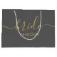 Custom Bride Name Girly Chic Gold Script Grey Large Gift Bag