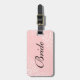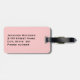 Lovely luggage tag for the bride done in pale pink, with graphics of white flourishes, on the front. Black text is fully customizable to read what you want. Perfect for the honeymoon and makes a great gift idea to the bride and groom.