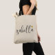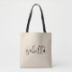 A chic modern cream bag with black script name and gold heart that's perfect for a bridesmaid proposal. Your bridesmaids can fill their tote with essentials for Bachelorette Party trips, or for essentials to bring on the morning of the wedding.