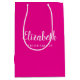Custom Typography Script Text Name Elegant Modern Template Womens Bridesmaid Wedding Bachelorette Best Pink & White Medium Gift Bag.