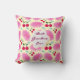 Custom Bright Pink Floral Cherry Pattern Throw Pillow