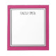Bright pink (background colour can be edited) personalized notepad with your name or any text you choose at the top.