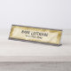 Elevate your workspace with a touch of executive class. Our custom-made brushed gold name plate is designed for the professional who values style and authority. Featuring a striking high-contrast black text on a metallic gold background, this nameplate ensures your name and title are displayed with crystal-clear visibility.