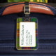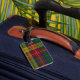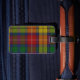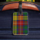 Stylish luggage tag done in the colourful traditional Scottish tartan plaid pattern of the Buchanan clan.. A yellow edged white text area, on the front has green text ready to personalize with your information. The perfect way to spot your luggage, and makes a great gift idea.