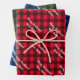 Personalized buffalo plaid gingham check Merry Christmas Wrapping Paper Sheets. Red, green and blue chequered flannel pattern print Holiday gift wrap rolls with custom greeting and name. Cheerful classic gingham style design for friends and family. Make the tartan checkers small or large. Customizable background colour. Elegant brush script typography and fonts. Fun for men, women and kids.
