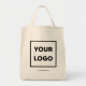 Increase your business marketing reach by giving your customers reusable grocery bags featuring your company logo and website on both sides. Replace the sample logo and text with your own in the sidebar. Your logo can be in color or black and white. It can be circular, square, or another shape. This is eco-friendly swag they will keep! Other styles of tote bags available in the sidebar.