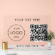 A modern clear acrylic minimalist personalized sign perfect for your business promotion. Customize the business logo, QR Code and text and make it your own. A professional transparent business logo sign ideal for business signs, marketing, promotions etc. Simply replace the business logo placeholder with your own business logo and type in your text to create a professional acrylic sign.