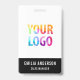 Easily personalize this custom employee name badge with your own company logo and qr code or barcode. Available with different background colours and attachments. No minimum order quantity.