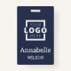 Enhance your company's image with this sleek and modern badge design. The minimalist layout features a deep navy blue background that provides a sophisticated backdrop for your company's logo and employee name. The clean, professional aesthetic is both stylish and easy to read, ensuring a polished and unified look for your entire team.