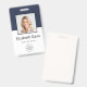 Present a polished and unified front for your team with this modern navy blue badge design. The clean, professional aesthetic features a bold horizontal split, creating a striking contrast that elegantly frames the employee photo and key information. This contemporary style elevates your brand's presence, ensuring a professional and memorable first impression.