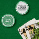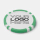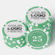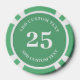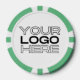 Personalized poker game chips with a custom business logo and your own text. This design in green includes the number 25 but it can be edited with any casino value amount.
