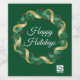 This beautiful company Christmas wine label is custom made with your business logo within a festive holly berry wreath with gold garland wrapping on a green background. Contemporary holiday labels for your client or corporate employee presents.