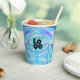 Easily upload your logo or other custom graphic to this 8oz paper party cup. Low minimums, and no costly set-up fees. The background / cup base is a simulated iridescent holo blue texture