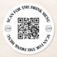 This sleek and versatile round QR code coaster is an excellent choice for restaurants, bars, or cafes aiming to enhance customer experience. The QR code can be personalized to read "Scan to see our drink menu" or "Scan to order," but the text can easily be changed for promotional purposes. The code can direct customers to social media, your website, or any other page. Featuring space for "Your Logo Here," it's perfect for corporate branding. Available in various shapes, this customizable coaster is a great way to promote your business and engage customers. Custom Text Business Logo QR Code Round Paper Coaster Menu For Bar Restaurant Cafe Custom