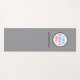 This yoga mat features a logo and name template on a gray background and is easily customizable with your business logo and name.